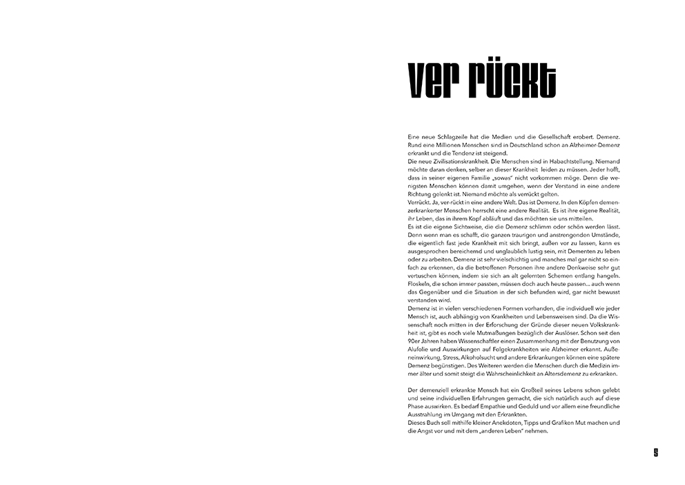 Meine Bachelor Arbeit beleuchtet die emotionale Ebene der Krankheit Demenz. Hierzu habe ich wahre Geschichten mit hilfreichen Tipps zum Umgang mit Dementen verknüpft und einen Illustrationsstil entwickelt, durch den sich der Betrachter besser in den Dementen hineinversetzen kann.